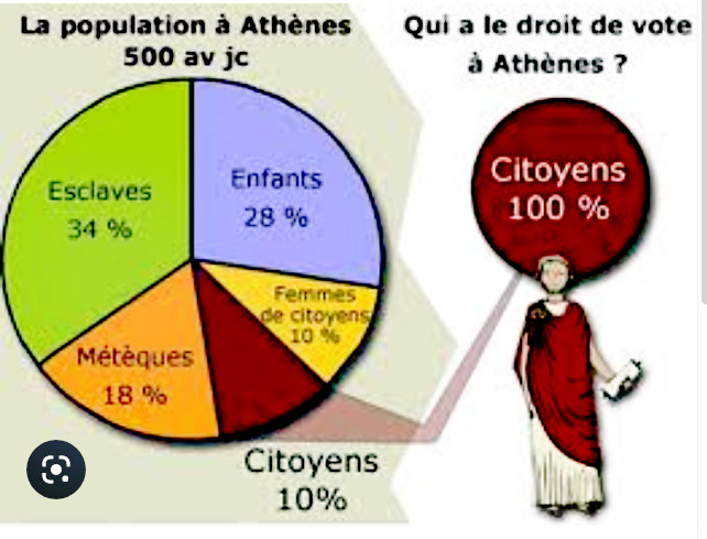 La "Démocratie", dont se gargarisent les politiciens et presstitués au service de l’occupant, n’est qu’un slogan produit en Grèce il y a 2500 ans et réservé à 10% de la population athénienne.