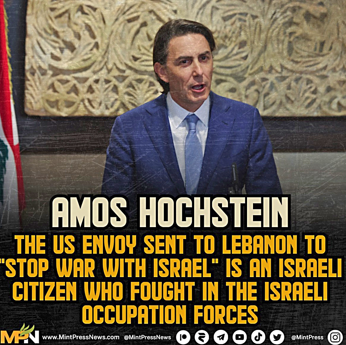 On évoque aussi des "négociations" surréalistes. Le comble est que les USA ont envoyé pour ce faire un certain Amos Hochstein, ancien SS (soldat sioniste) pour "arbitrer" entre le Liban et Israel. Il ne fait que compléter un autre judéo-sioniste, Anthony Blinken, qui depuis un an et 11 voyages fait semblant d’être un intermédiaire pour un cessez-le feu dont son maître (Israel) ne veut pas.