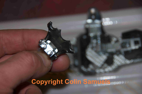 Je suppose que l’avant de la fixation était déjà fragilisé et fissuré, mais pas complétement cisaillée, comme montré sur la photo. Cependant je ne savais pas cela à ce moment car les fissures devaient probablement être cachées.