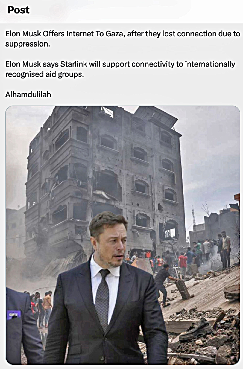 Pour contrecarre le black out médiatique organisé par l’armée d’occupation afin de massacrer dans le silence tout en racontant n’importe quoi, on peut espérer que les organisations humanitaires internationales pourront bénéficier du réseau Starlink comme Elon Musk semble s’être engagé à le faire…