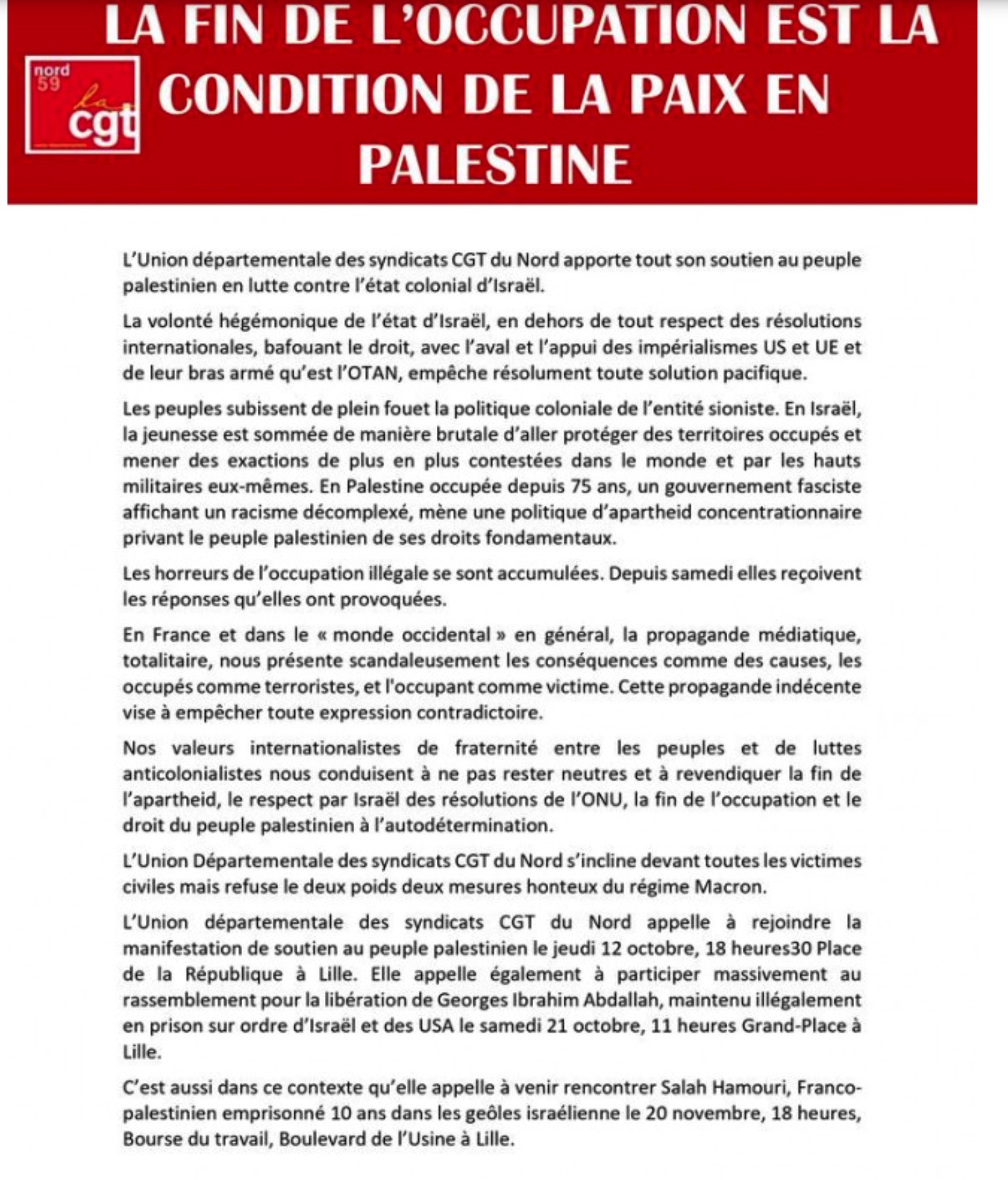 Dans le même département, quelques jours plus tôt, on a connu une hallucinante condamnation d’un responsable syndical qui n’avait fait que rappeler l’historique génocidaire antérieur au 7 octobre.