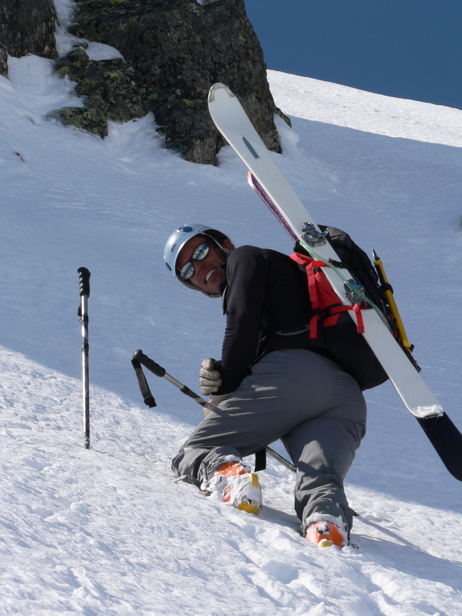 Il y eut aussi les hivers 97 et 98 où je lui ai confié mon frère Gérard. Très bon skieur, une maladie dégénérative de la rétine, l’avait peu à peu privé de la vue. Il affectionnait aussi les pentes raides. Christophe l’a donc guidé durant ces deux hivers, l’assurant à la montée et à la descente. Emmener un non-voyant en montagne et lui permettre de skier des couloirs en toute sécurité nécessite une maîtrise technique et une attention de tous les instants. Christophe avait ces qualités. Je lui faisais une totale confiance.