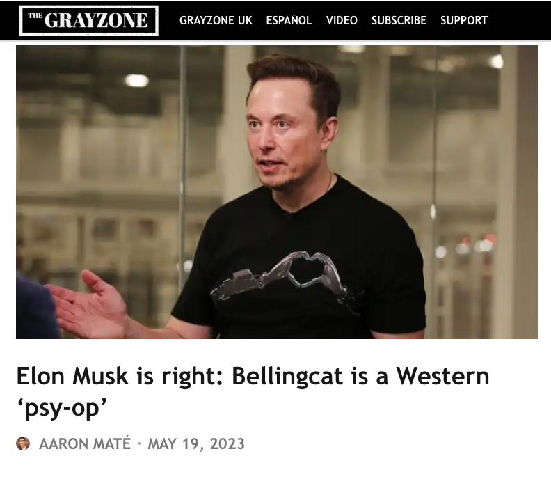 Attaqué à nouveau par le mainstream US, Elon Musk a trouvé de nombreux défenseurs dans la dissidence. A partir peut-être d’une mauvaise interprétation d’un fait divers publié par Bellingcat, le patron de Twitter a remis en place ce site alimentant les principaux organes de propagande de l’OTAN, notamment US et UK. Les articles ci-dessous rappellent les origines de cette officine financée entre autres par la NED (National Endowment for Democracy) laquelle n’avait pas hésité à revendiquer son origine dès 1991 par son premier directeur, Allen Weinstein : "Une grande partie de ce que nous faisons aujourd’hui a été fait secrètement il y a vingt-cinq ans par la CIA".