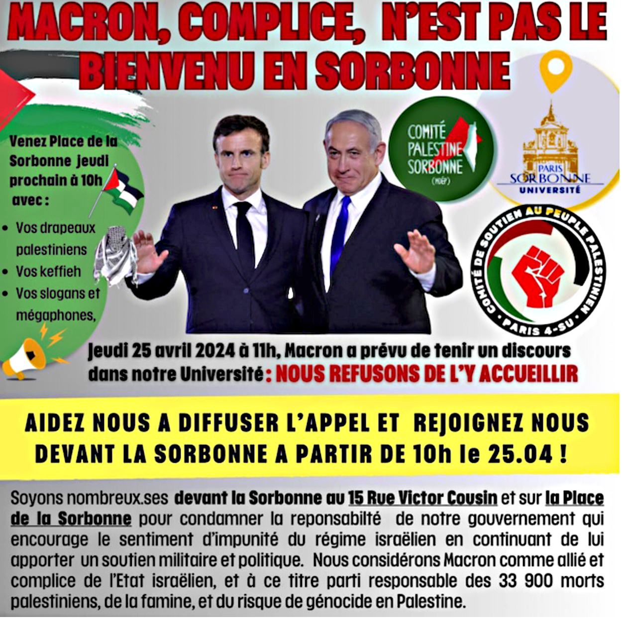 Macron ambitionne de se présenter à la Sorbonne mais sans les étudiants qui ne sont pas invités. Ces derniers appellent à manifester.