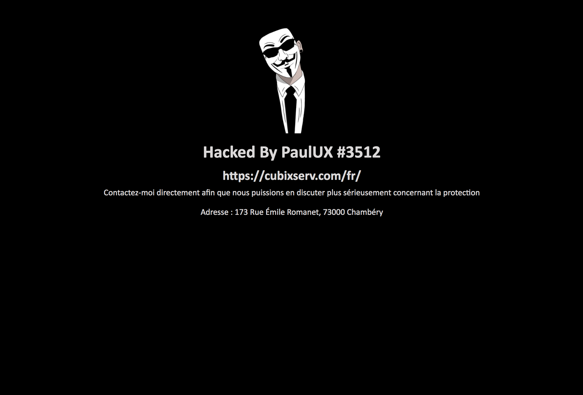 Le site a été remis en ligne ce mercredi 12/07/23 après avoir été hacké le 26 juin et donc invisible entre ces deux dates. Nous avons dû procéder à une restauration complète. Le site chambérien mis en cause sur le document est également une victime.