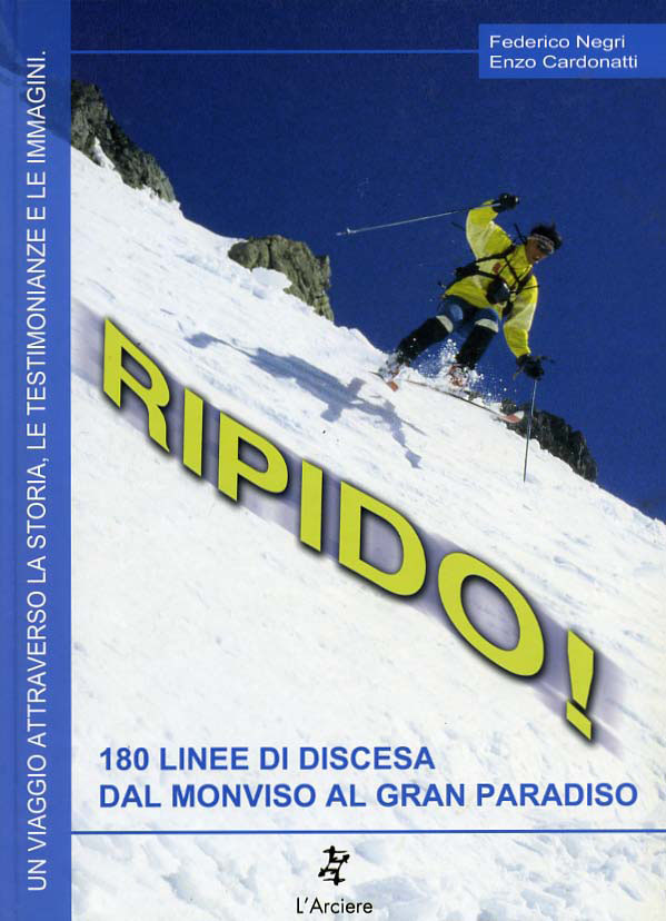 Federico Negri a écrit avec Enzo Cardonatti un magnifique ouvrage intitulé simplement RIPIDO. 180 lignes de descente du Viso au Grand Paradis, accompagnées de l’Histoire de la pente (une préface de Stefano De Benedetti), des témoignages et beaucoup d’images. Il est difficile en France de se procurer RIPIDO (ed. L’Arciere, 2006) mais on peut le trouver à La Libreria de la Montagna de Turin.