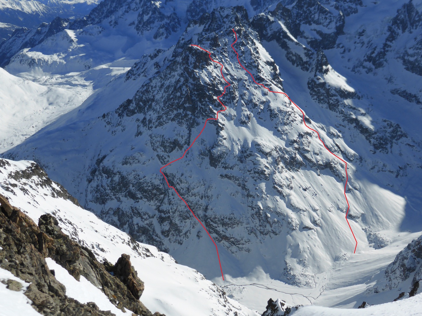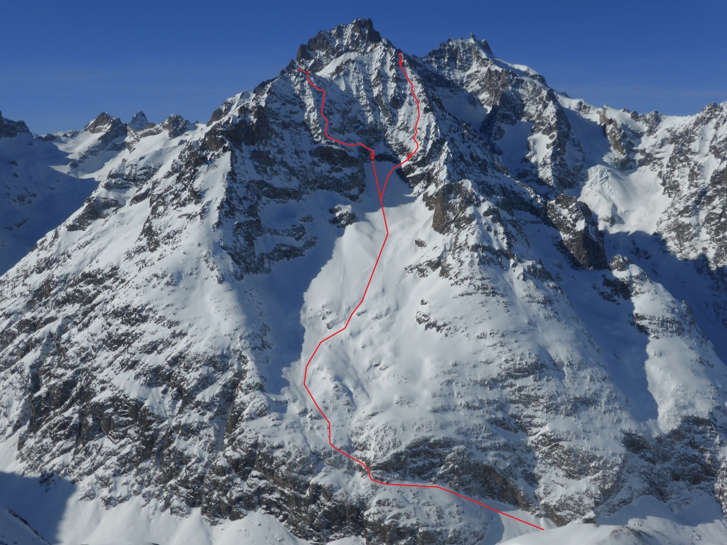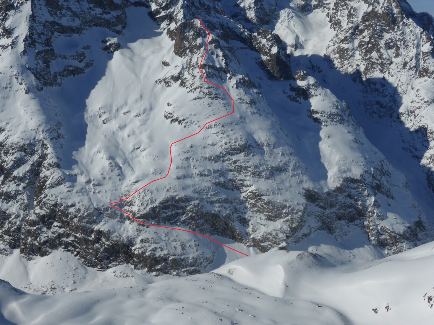 – 25/01/19, Pic du Rif, 3478m, directe du Ravin de la Feste depuis le Pic du Rif, face S, 1078m, 4.3 / E2