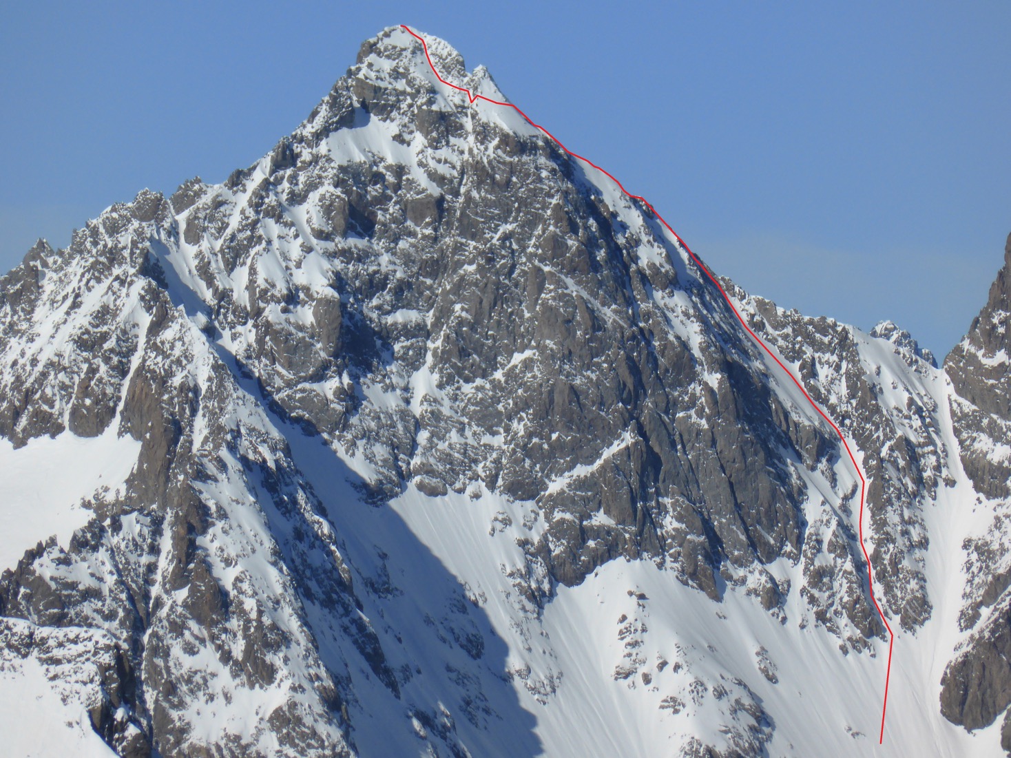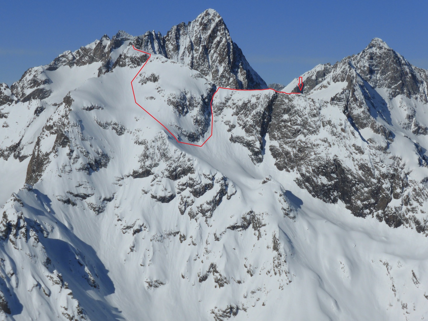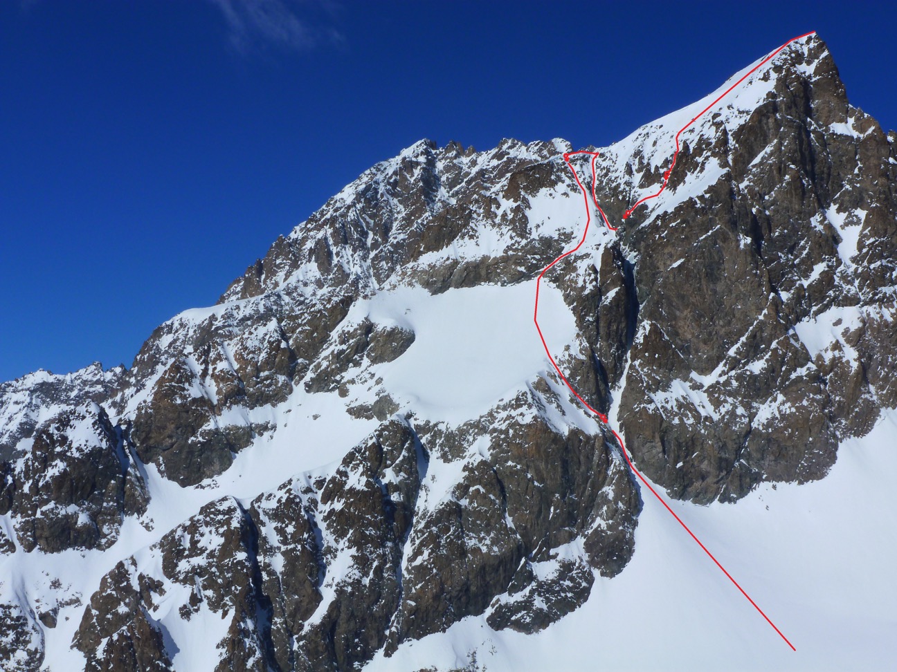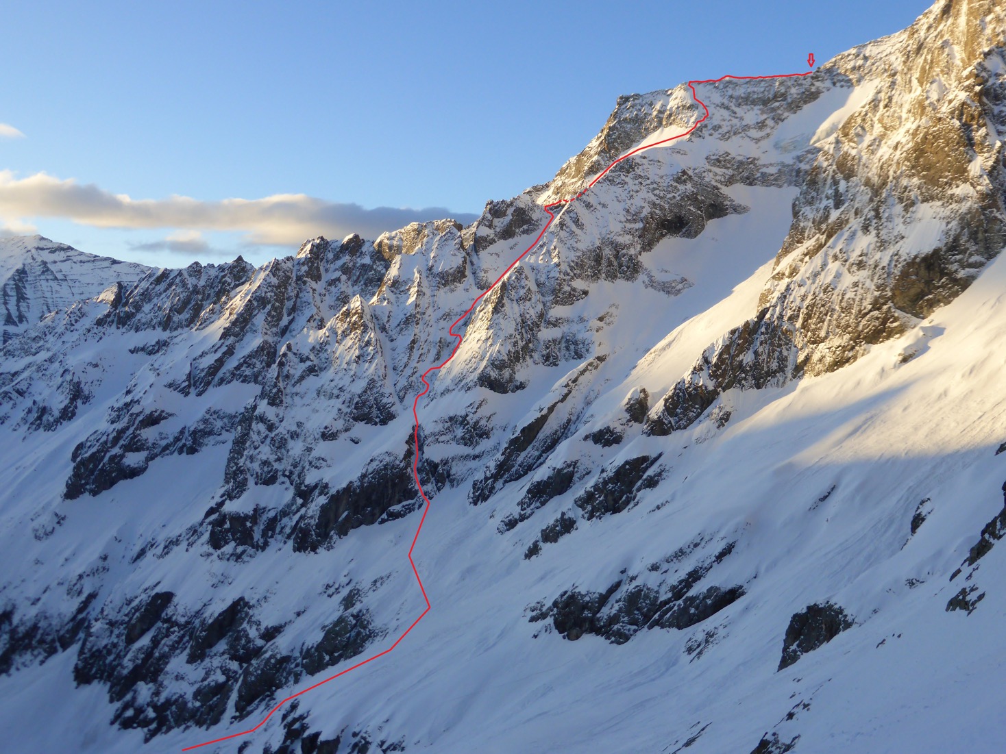 – 25/01/19, Pic du Rif, 3478m, directe du Ravin de la Feste depuis le Pic du Rif, face S, 1078m, 4.3 / E2