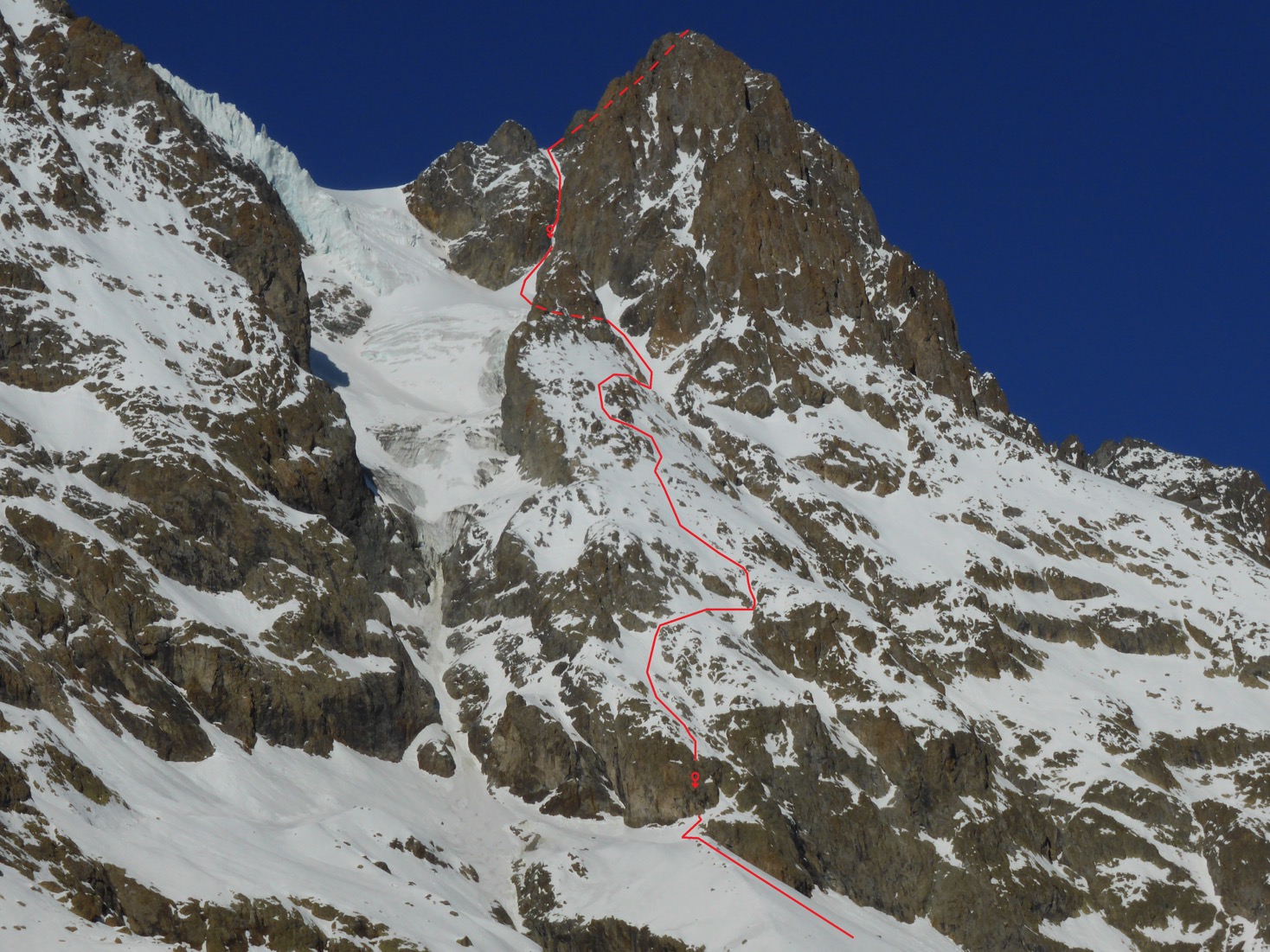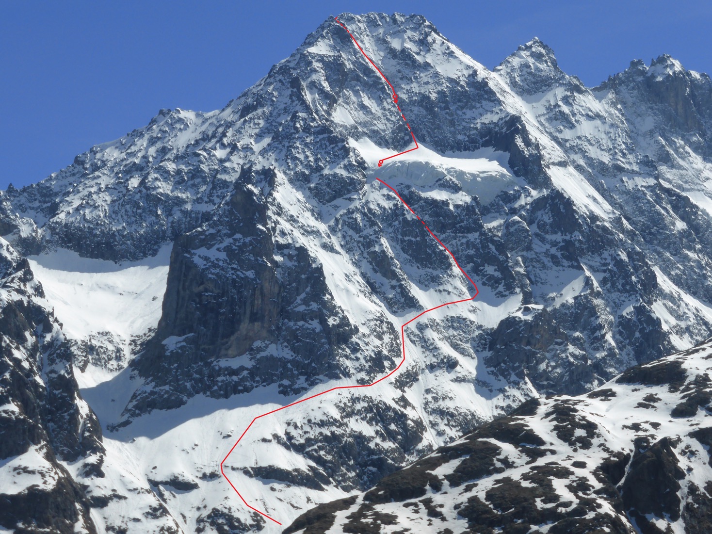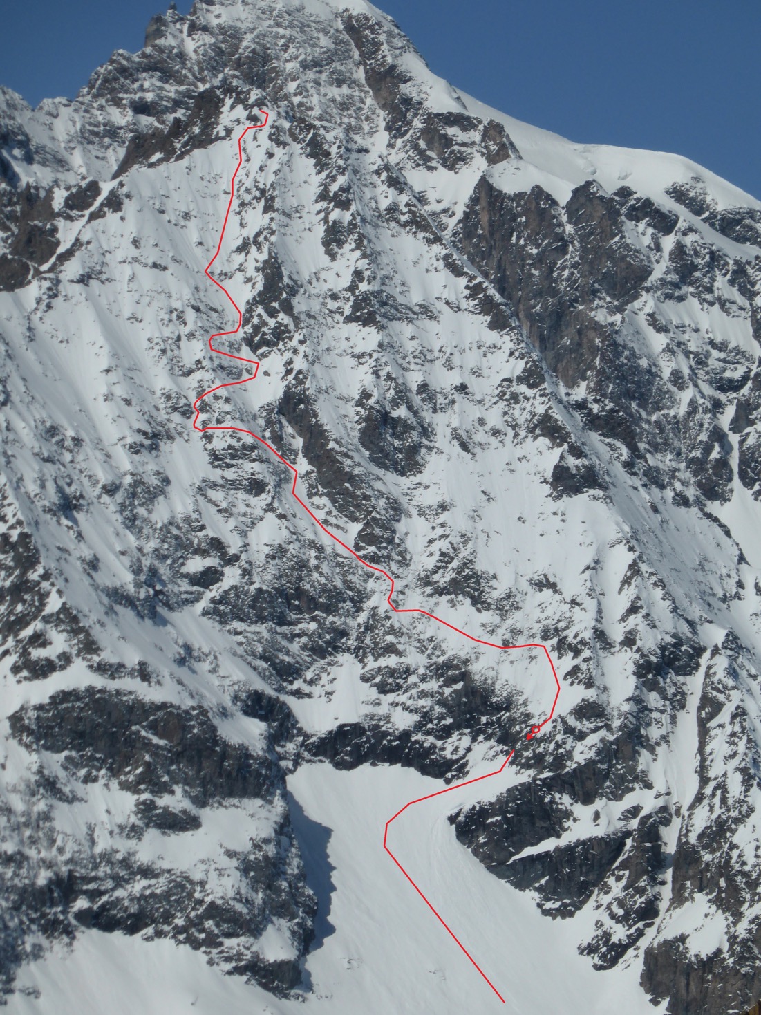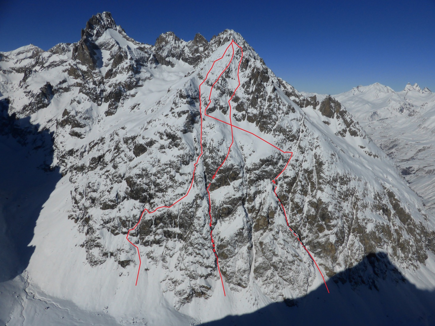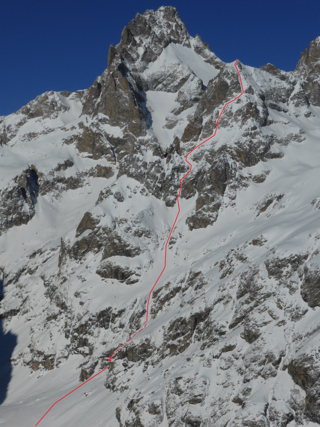 – 16/02/19, Pointe Gravelotte, 3387m, "T’es grave Lolotte", face NNE, 1 rappel de 30m, 1287m, 5.2 / E3 pour la partie sommitale