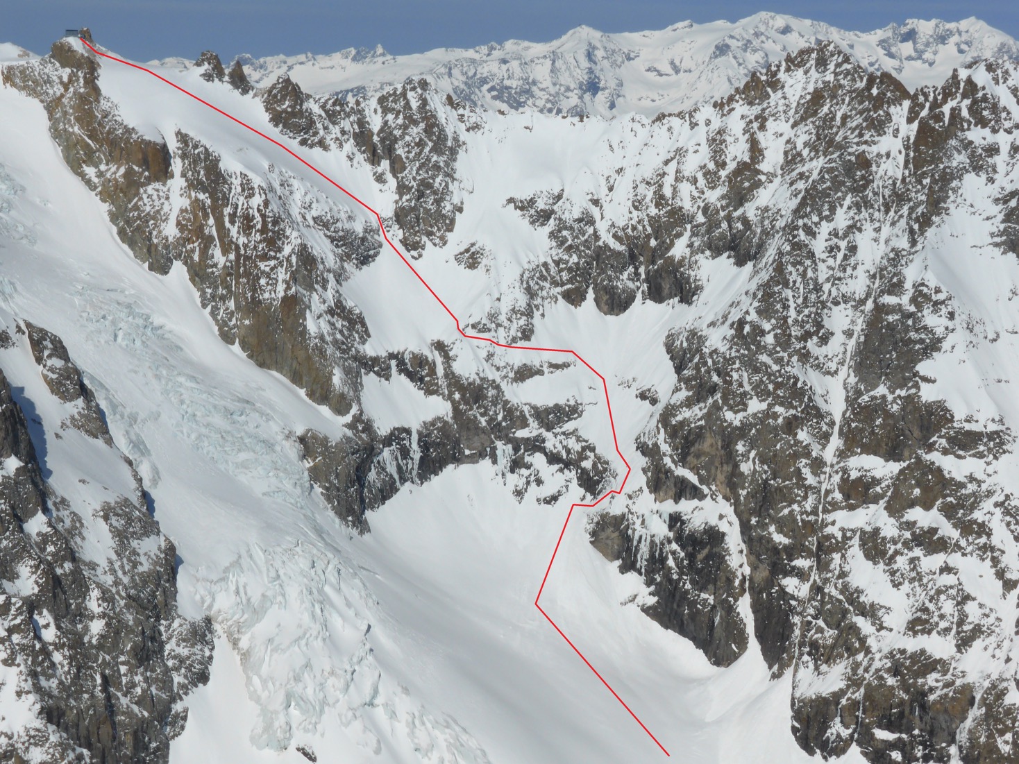 – 12/04/19, Refuge de l’Aigle, 3450m, “Couloirs des Chiottes”, face E, 450m, 4.3 / E3 pour la partie au dessus des barres rocheuses