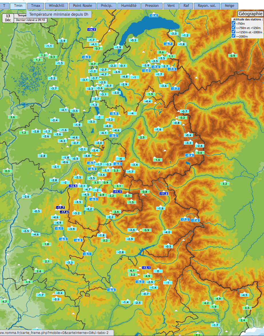 Sur le site ROMMA on relève le 13/12 à partir de 0h00, les minima suivants
